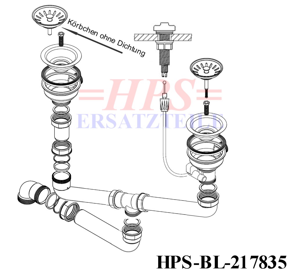 HPS-Ablaufverbindung 1½“ für Doppelspülen für Korbventiele mit wagerechen Ablauf ( Schraubverbindung ) geeignet für Doppelspülen mit unterschiedlich und gleich tiefen Becken