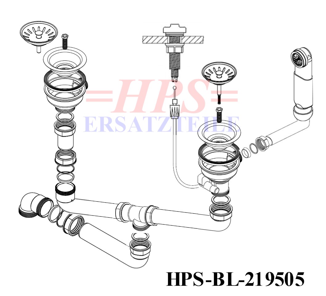 HPS-Ablaufverbindung 1½“ für Doppelspülen für Korbventiele mit wagerechen Ablauf ( Schraubverbindung ) geeignet für Doppelspülen mit unterschiedlich und gleich tiefen Becken