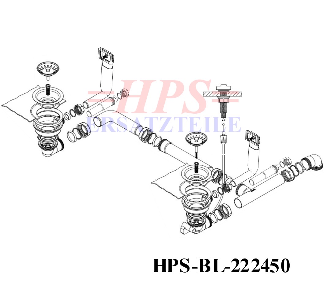 HPS-Ablaufverbindung 1½“ für Doppelspülen für Korbventiele mit wagerechen Ablauf ( Schraubverbindung ) geeignet für Doppelspülen mit unterschiedlich und gleich tiefen Becken