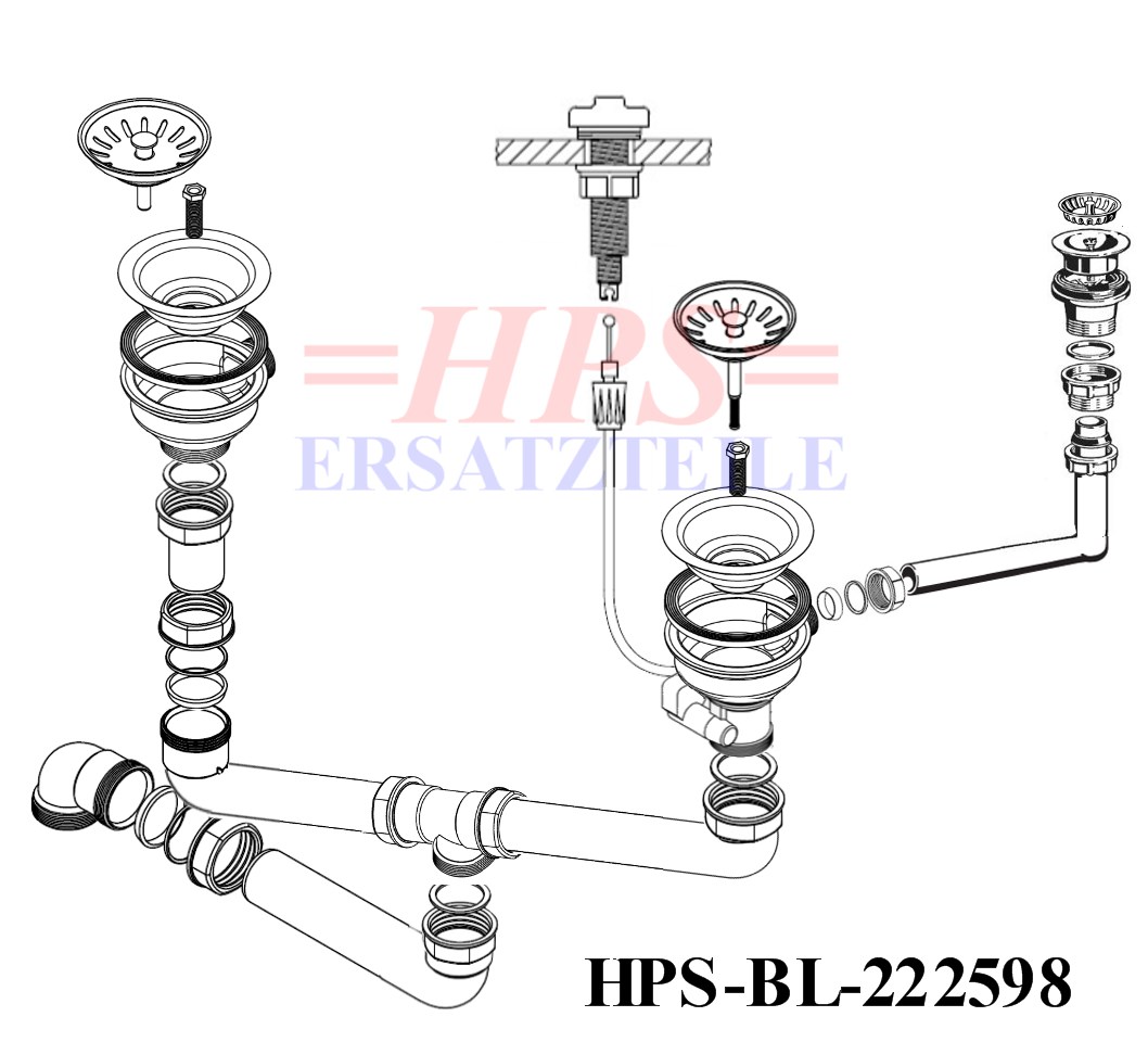 HPS-Ablaufverbindung 1½“ für Doppelspülen für Korbventiele mit wagerechen Ablauf ( Schraubverbindung ) geeignet für Doppelspülen mit unterschiedlich und gleich tiefen Becken