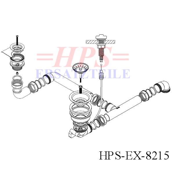 HPS-Ablaufverbindung 1½“ für Doppelspülen für Korbventiele mit wagerechen Ablauf ( Schraubverbindung ) geeignet für Doppelspülen mit unterschiedlich und gleich tiefen Becken