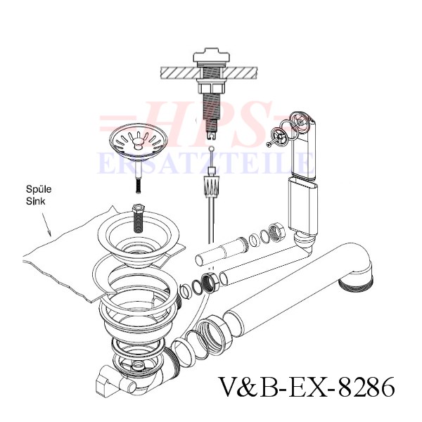 HPS-Ablaufverbindung 1½“ für Doppelspülen für Korbventiele mit wagerechen Ablauf ( Schraubverbindung ) geeignet für Doppelspülen mit unterschiedlich und gleich tiefen Becken