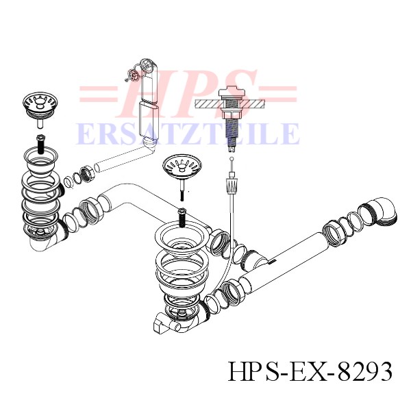 HPS-Ablaufverbindung 1½“ für Doppelspülen für Korbventiele mit wagerechen Ablauf ( Schraubverbindung ) geeignet für Doppelspülen mit unterschiedlich und gleich tiefen Becken