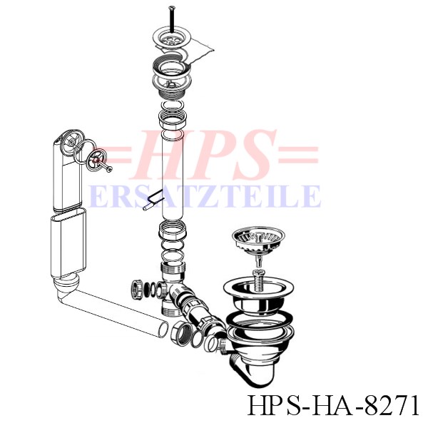 HPS-Ablaufverbindung 1½“ für Doppelspülen für Korbventiele mit wagerechen Ablauf ( Schraubverbindung ) geeignet für Doppelspülen mit unterschiedlich und gleich tiefen Becken
