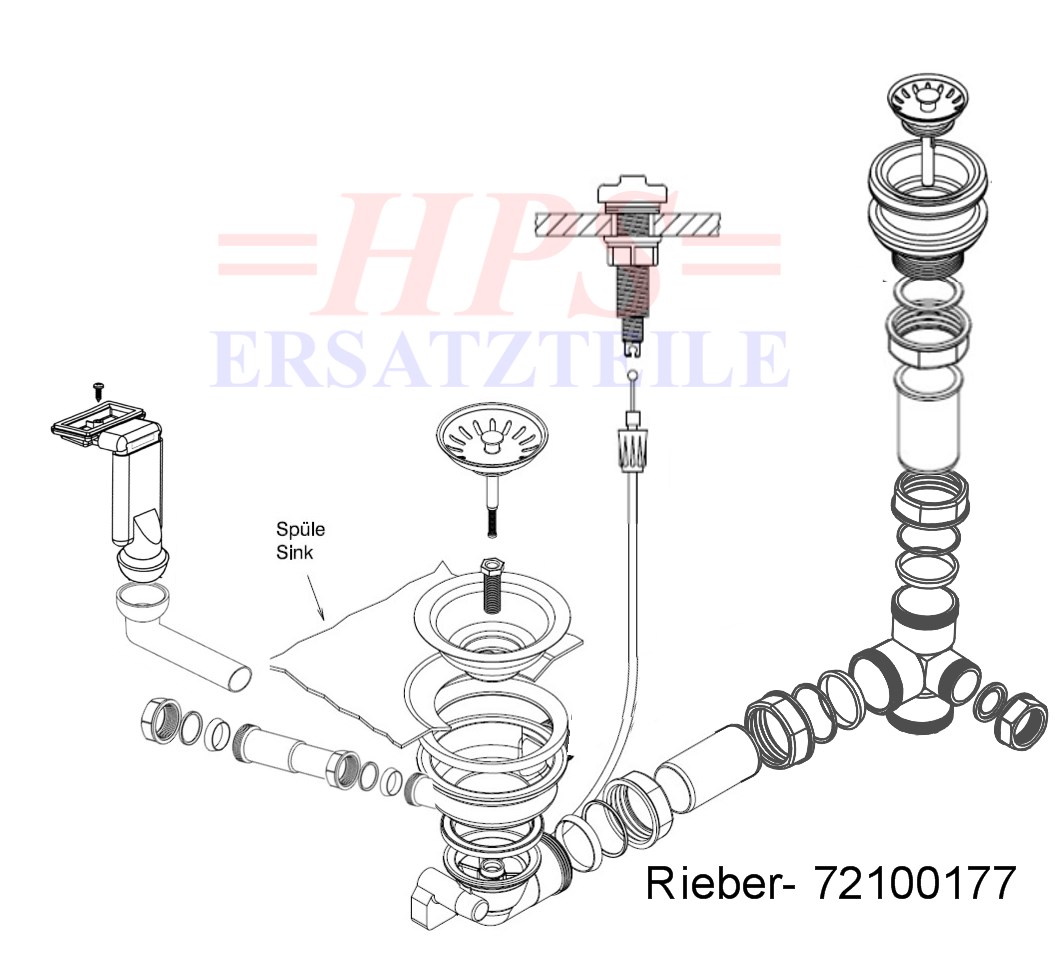 HPS-Ablaufverbindung 1½“ für Doppelspülen für Korbventiele mit wagerechen Ablauf ( Schraubverbindung ) geeignet für Doppelspülen mit unterschiedlich und gleich tiefen Becken