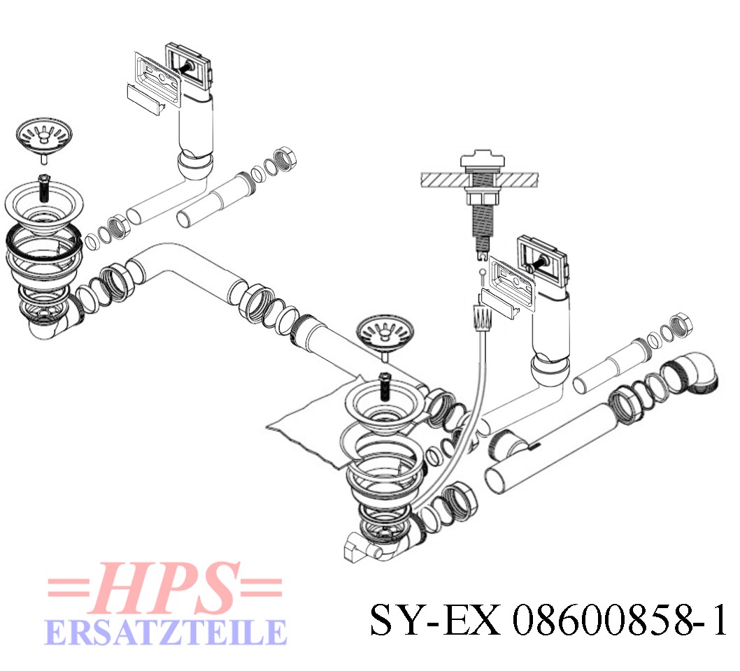 HPS-Ablaufverbindung 1½“ für Doppelspülen für Korbventiele mit wagerechen Ablauf ( Schraubverbindung ) geeignet für Doppelspülen mit unterschiedlich und gleich tiefen Becken