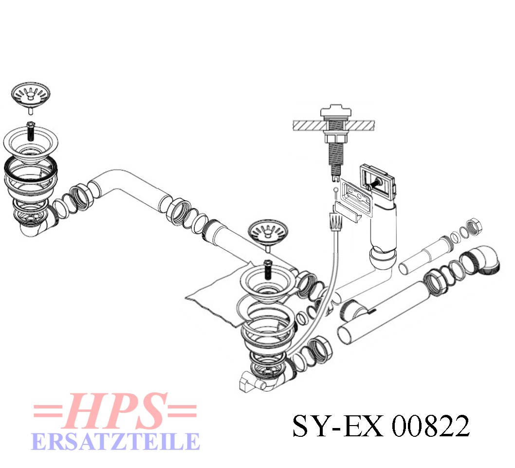 HPS-Ablaufverbindung 1½“ für Doppelspülen für Korbventiele mit wagerechen Ablauf ( Schraubverbindung ) geeignet für Doppelspülen mit unterschiedlich und gleich tiefen Becken