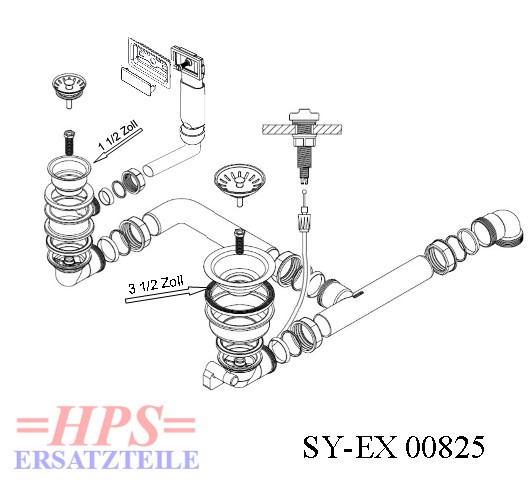 HPS-Ablaufverbindung 1½“ für Doppelspülen für Korbventiele mit wagerechen Ablauf ( Schraubverbindung ) geeignet für Doppelspülen mit unterschiedlich und gleich tiefen Becken