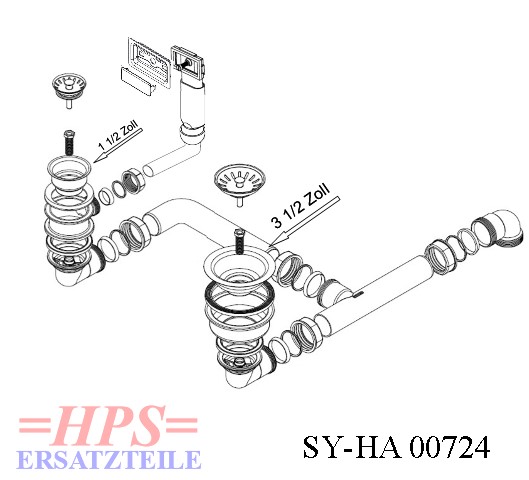HPS-Ablaufverbindung 1½“ für Doppelspülen für Korbventiele mit wagerechen Ablauf ( Schraubverbindung ) geeignet für Doppelspülen mit unterschiedlich und gleich tiefen Becken