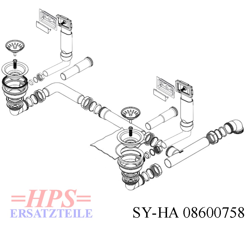 HPS-Ablaufverbindung 1½“ für Doppelspülen für Korbventiele mit wagerechen Ablauf ( Schraubverbindung ) geeignet für Doppelspülen mit unterschiedlich und gleich tiefen Becken