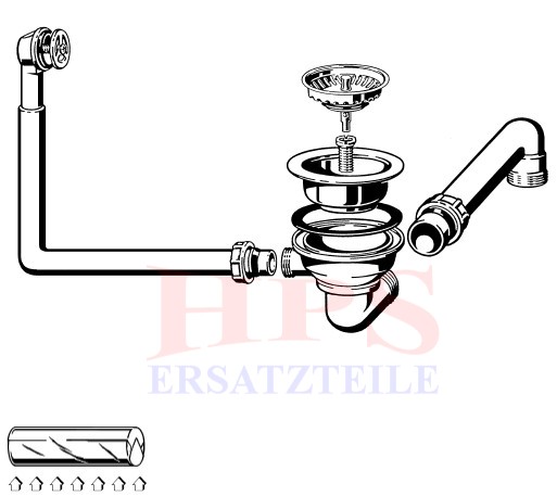 HPS-Ablaufverbindung 1½“ für Doppelspülen für Korbventiele mit wagerechen Ablauf ( Schraubverbindung ) geeignet für Doppelspülen mit unterschiedlich und gleich tiefen Becken