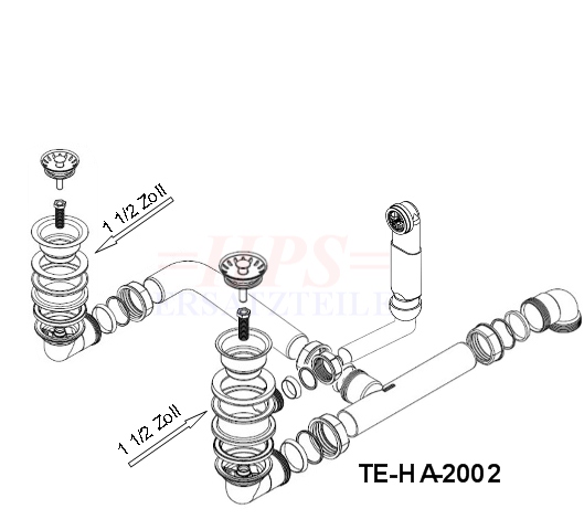 HPS-Ablaufverbindung 1½“ für Doppelspülen für Korbventiele mit wagerechen Ablauf ( Schraubverbindung ) geeignet für Doppelspülen mit unterschiedlich und gleich tiefen Becken