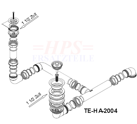 HPS-Ablaufverbindung 1½“ für Doppelspülen für Korbventiele mit wagerechen Ablauf ( Schraubverbindung ) geeignet für Doppelspülen mit unterschiedlich und gleich tiefen Becken