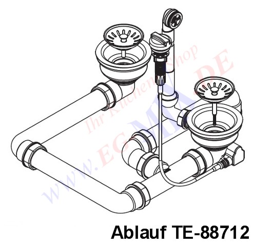 HPS-Ablaufverbindung 1½“ für Doppelspülen für Korbventiele mit wagerechen Ablauf ( Schraubverbindung ) geeignet für Doppelspülen mit unterschiedlich und gleich tiefen Becken