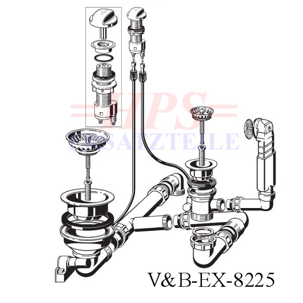 HPS-Ablaufverbindung 1½“ für Doppelspülen für Korbventiele mit wagerechen Ablauf ( Schraubverbindung ) geeignet für Doppelspülen mit unterschiedlich und gleich tiefen Becken
