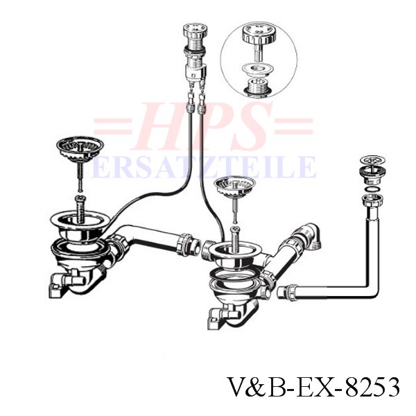 HPS-Ablaufgarnituren sind von gleicher Qualität wie die V&B-Ablaufgarnituren. Diese Ablaufgarnituren werden von uns zusammengestellt. Dadurch können wir diese zu einem günstigeren Preis anbieten.