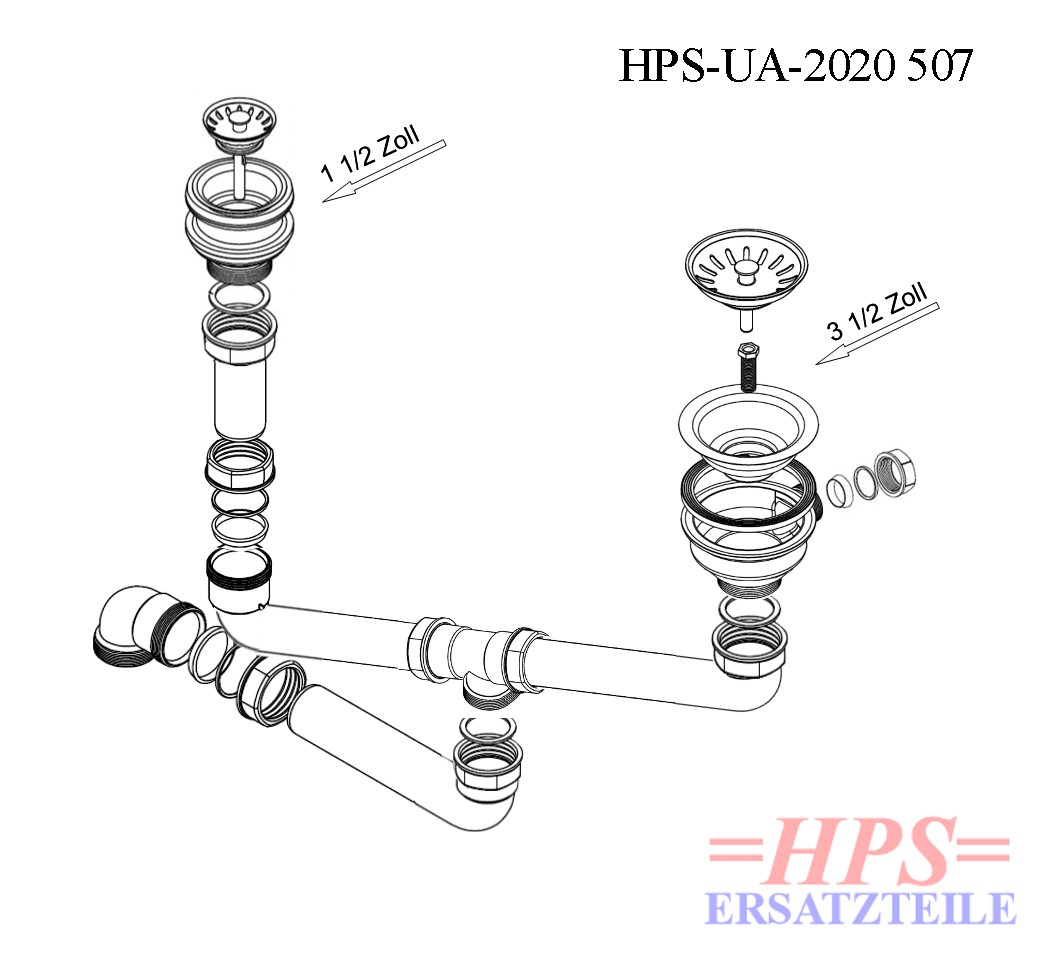 Der Überlauf kann wahlweise am einem der Korbventile angeschlossen werden. Diese Ablaufgarnitur ist geeignet für Spülen mit zwei unterschiedlich tiefen Becken.